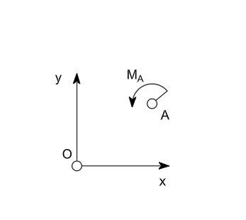 $$ \overline{M_{A}}=\sum_{i=1}^{n}\left(\overline{r_{i}} \times \overline{P_{i}}\right) $$Wektor ten przy redukcji jest nazywany momentem głównym. Nie jest on niezmiennikiem układu, zaczepiamy go w biegunie redukcji, jego kierunek jest prostopadły do płaszczyzny, w której leżą siły, czyli do płaszczyzny xy