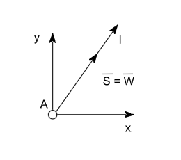 W tym przypadku możemy wektor główny i moment główny zastąpić jeszcze prostszym układem; wektor momentu zastępujemy parą sił leżącą w płaszczyźnie xy i tak tę parę przesuwamy, obracamy oraz dobieramy wartość siły pary, aby jedna siła pary z wektorem \(\bar{S}\) tworzyła dwójkę zerową \(\bar{S}+\overline{W^{\prime}}=0\) (parę sił leżących na jednej prostej o przeciwnych zwrotach i takich samych wartościach), prezentuje to poniższy rysunek