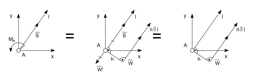 \(W=W^{\prime}=S\), wówczas ramię pary \(h=\frac{M_{A}}{S}\)